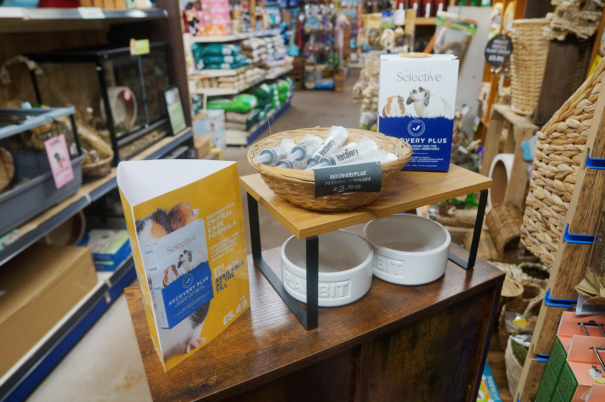 We are thrilled to sell Science Selective RecoveryPlus critical care formula feed for rabbits & guinea pigs! If you require this vital feed please ask at the till, RecoveryPlus syringes for measuring and administering the feed are available on the shop floor.